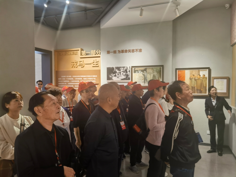 第一站,他们来到1955年被授予大将军衔的许光达纪念馆和故居,陈列馆内用大量图片和文字介绍了许光达将军的一生。老同志们认真听取讲解员的介绍,仔细观看展览,深刻感受这位杰出的无产阶级军事家戎马一生的丰功伟绩。