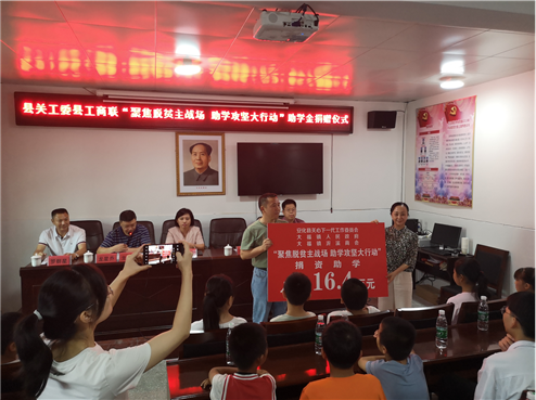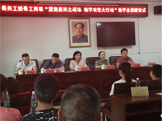 7月6日上午,安化县关工委、县工商联在全县脱贫攻坚任务最重的大福镇举行“聚焦脱贫主战场、助学攻坚大行动”捐资助学活动,县政协副主席、县工商联主席李艳云,县关工委执行主任林玲,县委组织部副部长、县关工委副主任龙星乔,镇党委相关负责同志参加。