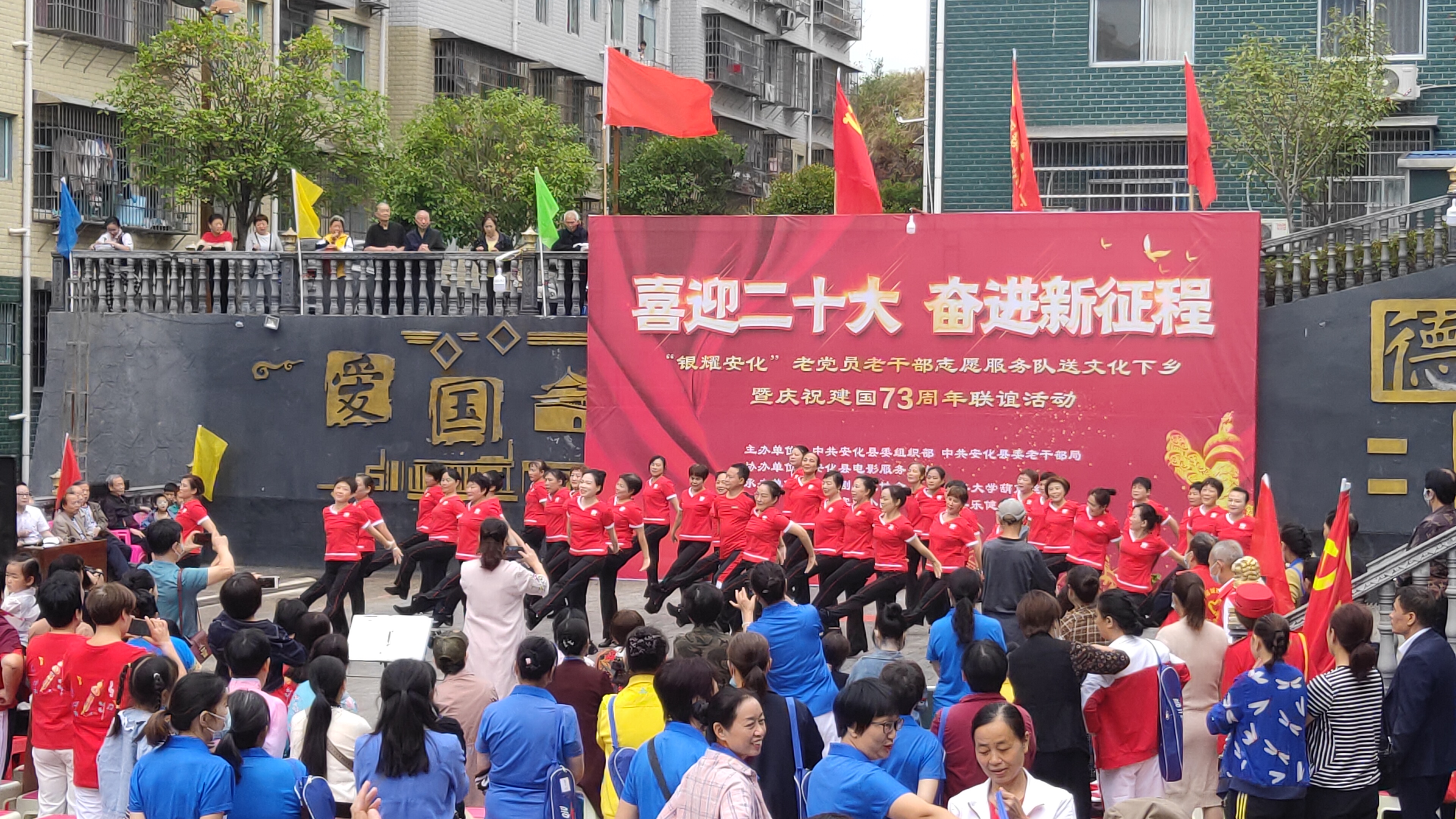 为喜迎党的二十大召开,丰富小区居民群众精神文化生活,9月24日上午,“银耀安化”老党员老干部志愿服务队送文化下乡暨庆祝中华人民共和国成立73周年活动在东坪镇城西家园小区开展。