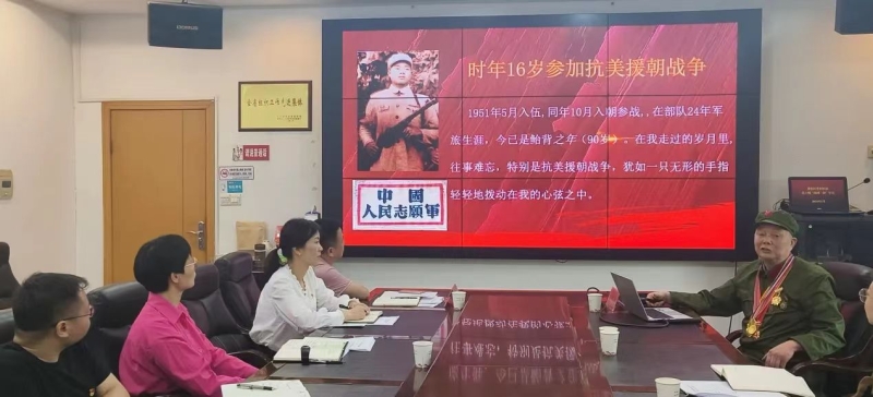 “我血书明志请求参军,16岁参加抗美援朝。”活动中,李仲国还讲述了自己参加战斗的真实故事,讲述了邱少云、黄继光、罗盛教等英雄的故事,以此激励青年干部牢固树立爱国主义思想,赓续红色血脉,积极参与红色宣讲、国防教育、探访慰问等活动,让爱国主义教育在机关“热”起来、“活”起来,在场的人无不动容。