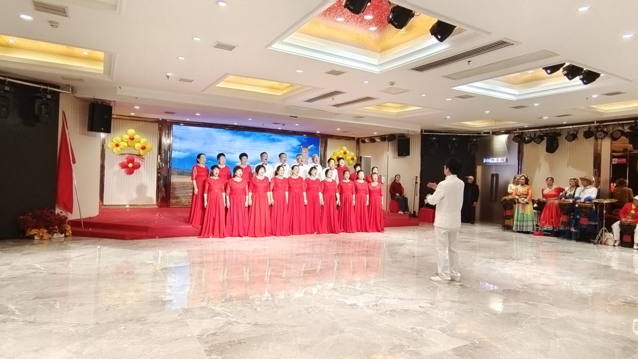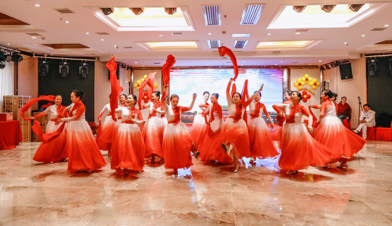 随后,联欢会进入了精彩纷呈的节目表演环节,十四个精心准备的节目依次上演。每一个节目都独具特色,原创歌曲大合唱《复兴路上大步走》《幸福资阳我的家》歌声激昂有力;形体走秀《来与不来》展现优雅与自信;非洲鼓表演《红歌联唱》点燃全场热情;舞蹈《五星红旗》大气豪放、充满力量;太极气功表演《中国人》《马王堆引述》充分展示传统文化魅力。