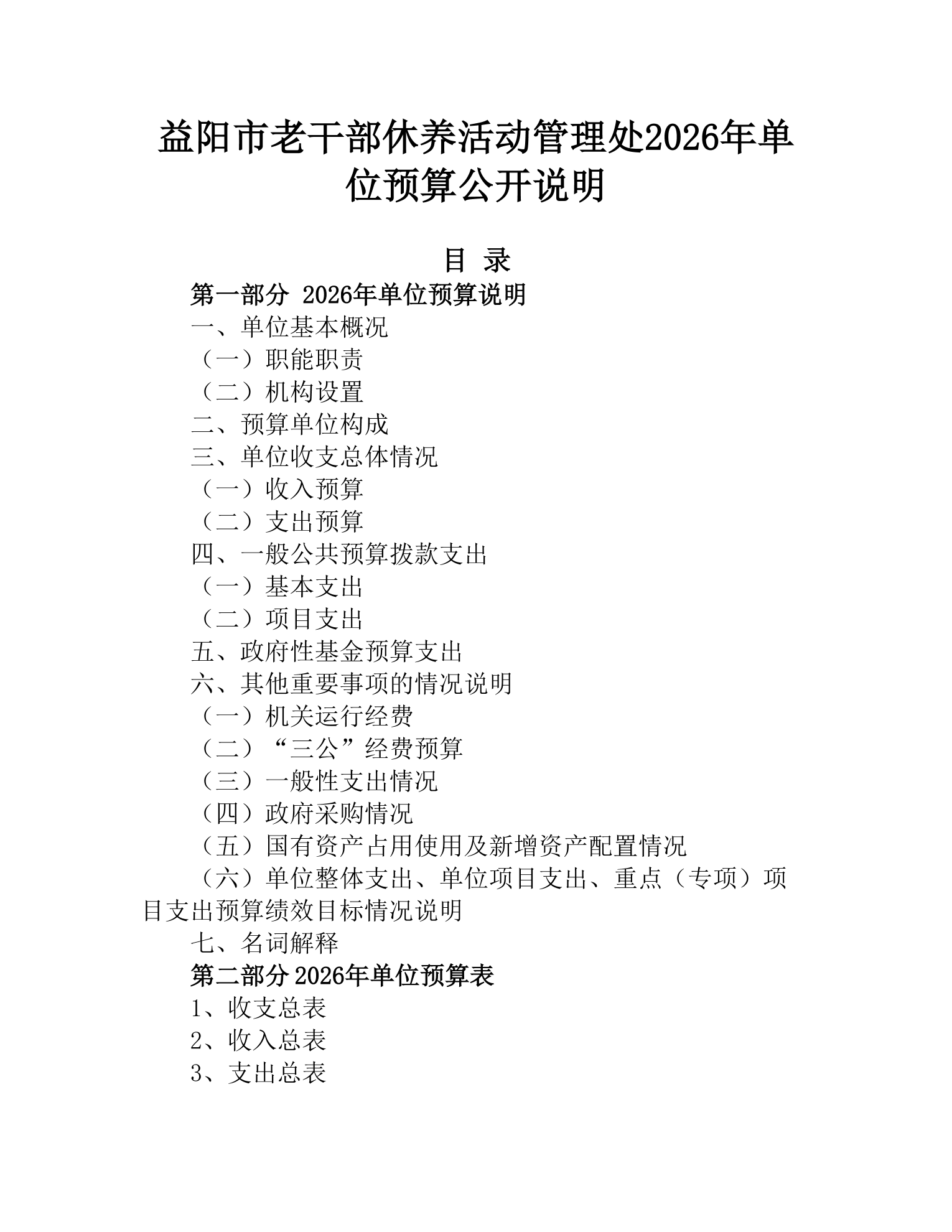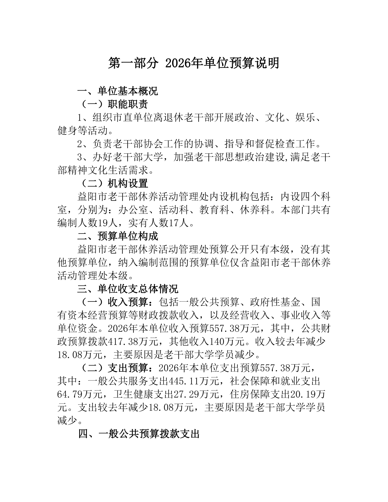 益阳市老干部休养活动管理处2026年部门预算公开说明