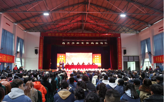 2月3日,农历小年,桃江县第七中学为高三同学们举行“礼敬宪法,高考誓师”成人仪式,学校领导班子、高三年级全体师生以及家长参加了本次活动。